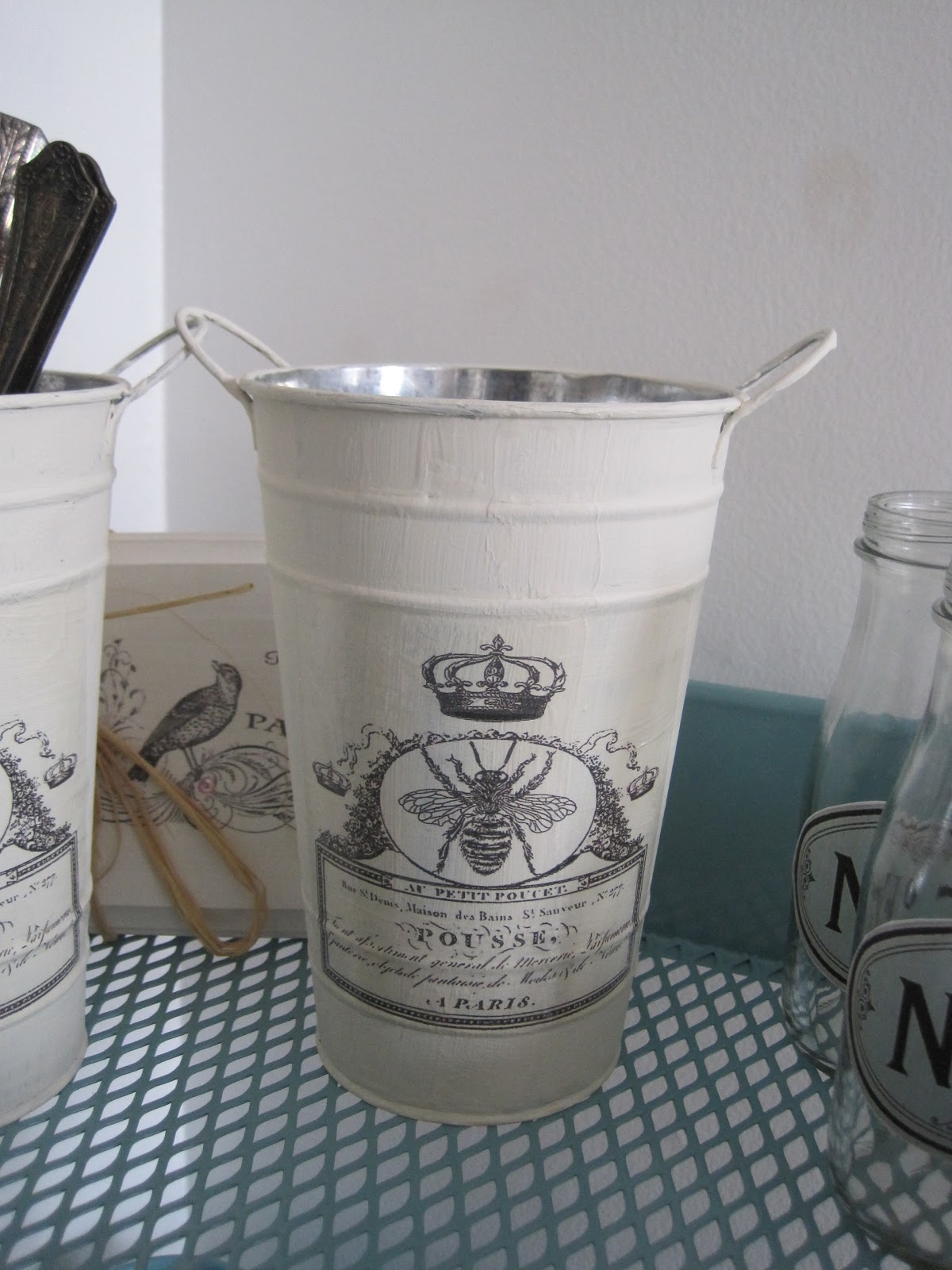 I gave each a couple of coats of Annie Sloan Chalk Paint in Louis Blue. Once they were dry, I broke out some sandpaper and just sanded them in random areas for an aged look.